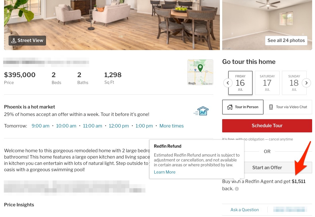 The Sign & Save rebate requires committing to a Redfin agent after just one home tour. Before you sign, make sure you understand what working with a Redfin agent entails and feel comfortable with the level of service they offer.