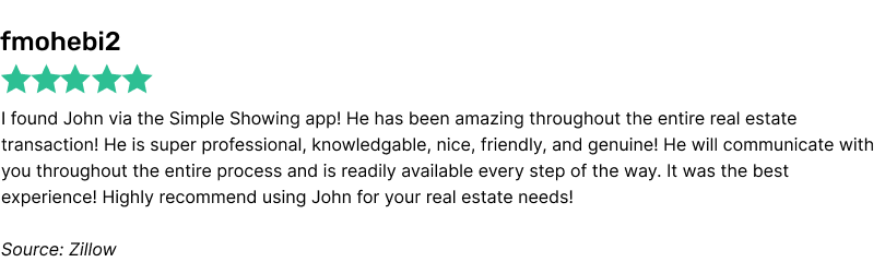 Another customer was impressed with how accessible SimpleShowing’s agent was and with the quality of their services. He said, “SimpleShowing and Fred McGill are the best in the business. He successfully listed and sold our home in a quick and timely manner. Very professional, accessible & clear in communication. They use an exceptional photographer, then utilize all the listing sites where buyers shop for a home. I couldn’t be more impressed from start to finish.”